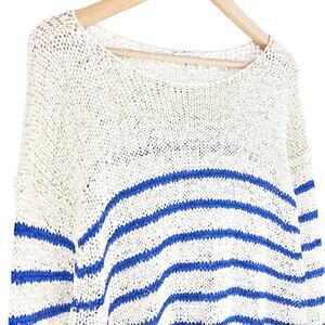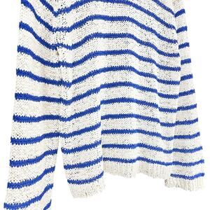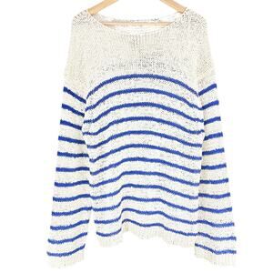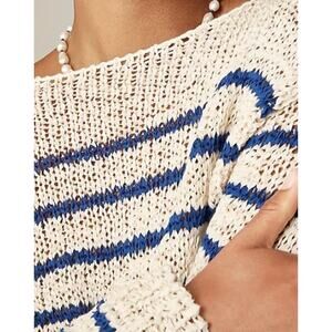 J. CREW Montauk Open-Weave Boatneck Pullover Sweater Blue/Ivory Stripe Size XL