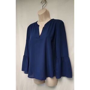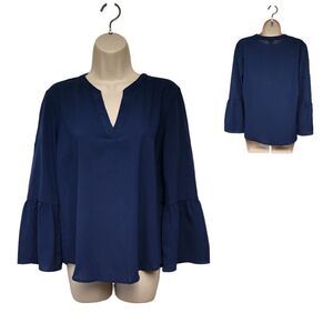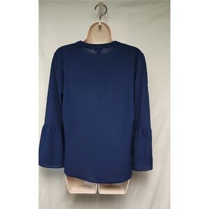 J. CREW NOTCHED V-NECK BELL SLEEVES BLOUSE NAVY BLUE SIZE SMALL