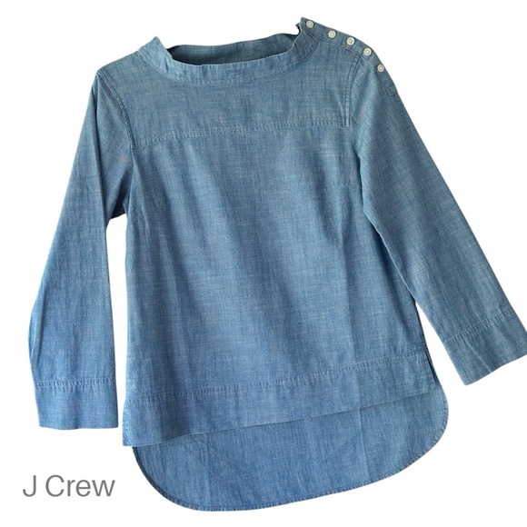 J CREW | NWOT LONG SLEEVE CHAMBRAY COTTON TOP BUTTON SHOULDER HIGH LOW SIZE 00