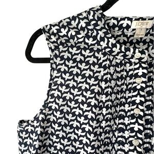 J CREW | NWOT SLEEVELESS TUXEDO TOP NAVY BLUE & WHITE BIRD PRINT | SIZE: 8