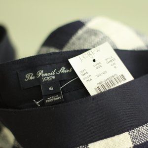 J. CREW Navy Blue and White Gingham Pencil Skirt