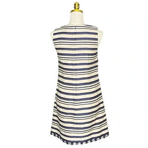 J CREW | Navy/Cream Scalloped Trim Striped Shift Dress with Grommets Size 6