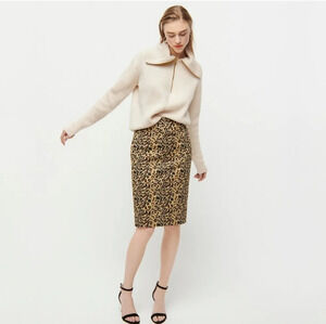 J CREW No. 2 Pencil Skirt in Leopard Print Bi-stretch Cotton Elastane, Lined, 2P
