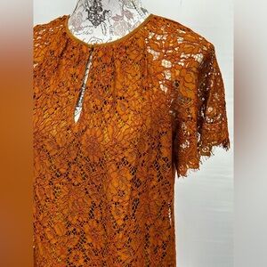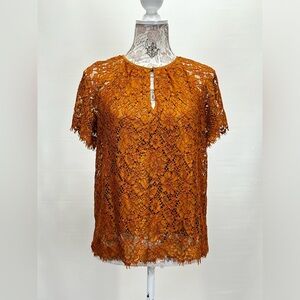 Ochre lace flutter sleeve top from J. CREW, size XS. Top has round keyhole neckline and is fully lined.