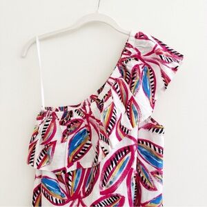 Pretty J. Crew floral one shoulder dress, lined. Linen blend.