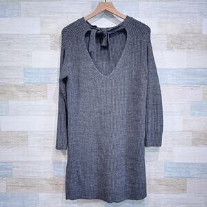 J CREW Open Back Flannel Ribbed Sweater Dress Gray Wool Alpaca Womens Small