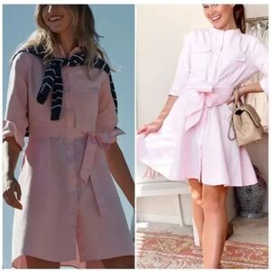 J. CREW Oxford Shirt Dress Pink & White Striped Preppy Academia Spring
