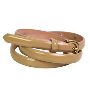 J. CREW PATENT BEIGE GENUINE LEATHER 1/2"Wd DRESS SKINNY WOMEN'S BELT Sz S (E6