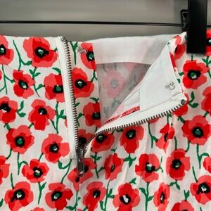 GUC J CREW POPPY FLOWER MINI SKIRT SIZE 2 WHITE / BRIGHT RED With pockets Approximate measurements laying flat: Waist 14” Length 15”