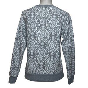 • Gray and white crewneck pullover sweatshirt in a paisley and floral pattern