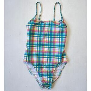 J CREW Pastel Plaid One Piece Swimsuit Sz 0 Underwire High Leg