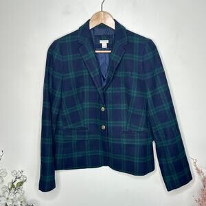 J. CREW Patterned Schoolboy Blazer Blackwatch Plaid Green Navy Sz 6 $238 {R3}