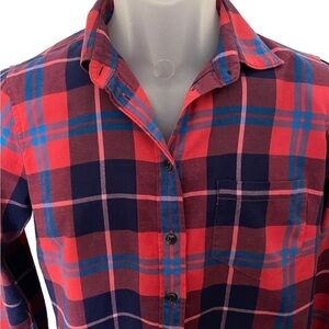 J. CREW Perfect Fit Red & Blue Button Down Shirt Women SP Small Petite