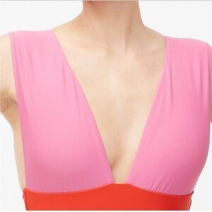 J Crew Pink & Coral Colorblock Ruched One Piece