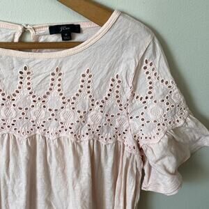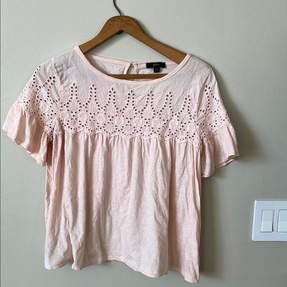 J CREW Pink Eyelet Flutter Short Sleeve Top Size Medium
