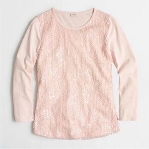 Elevate your wardrobe with this chic J. Crew tee, featuring a stunning pink hue and eye-catching sequin embellishments.