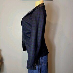 J CREW Plaid Regent Wool Blazer Womens Size 2 Satin Lapel Blue Green Academia