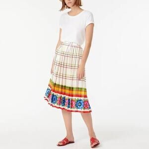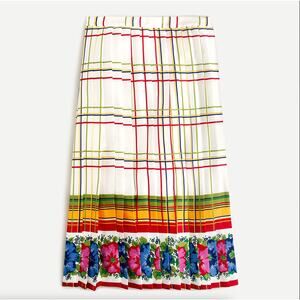 J. CREW Pleated Midi Skirt With Floral Border Red Yellow Moss {FF34}
