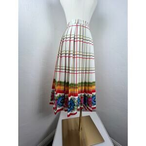 J. CREW Pleated Plaid & Floral Midi Skirt (Womens Size: 4)