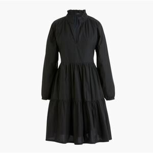 J. CREW Poplin Mini Dress Size S Black Tiers Long Sleeve Business Casual Classic