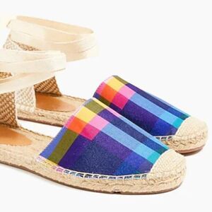 J CREW Printed Canvas Ankle-Wrap Espadrille Sandals Soze 7