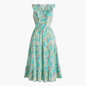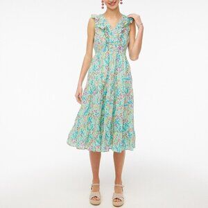 💕J. CREW💕 Printed V-Neck Smocked Midi Dress ~ Fresh Spearmint Floral Print 8