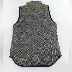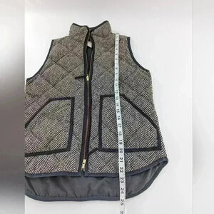 J CREW Puffer Vest Womens xs Black Brown Herringbone Quilted Sleeveless Zip