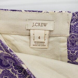 J. CREW Purple Medallion Paisley Cotton Twill No. 2 Pencil Skirt 4, purple cream, fitted, slit in back, style 72585