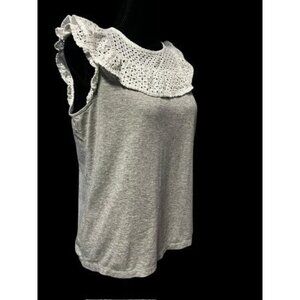J. CREW RUFFLE WOMEN TOP, GREY/WHITE, WORK ATTIRE, WESTERN, COTTAGECORE