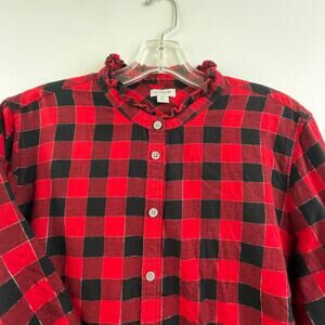 J. CREW Red Black Buffalo Check Plaid Pattern Button Down Womens XL Christmas