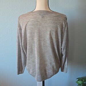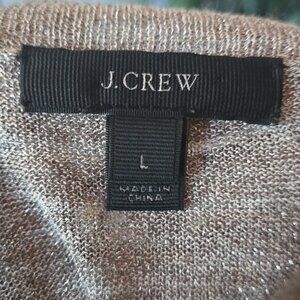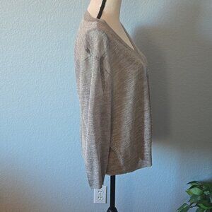 J CREW Relaxed V-neck Metallic Glitter Sweater Top Beige Taupe Gold Holiday Sz L