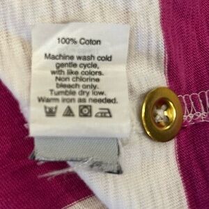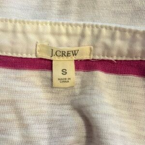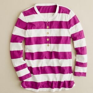 This J. Crew 3/4 sleeve Henley tee showcases a classic rugby striped pattern in pink and white, crafted from a soft cotton fabric for everyday comfort.