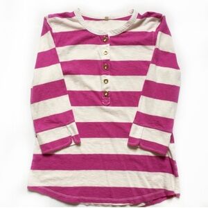 J. CREW Ringspun Wide Rugby Stripe Pink and White 3/4 Sleeve Henley Tee
