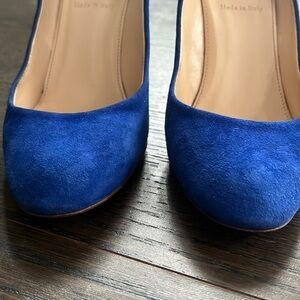 Beautiful bright electric blue suede round toe heels. Size 7. Leather upper. Made in Italy.