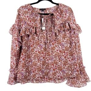 J. CREW Ruffle Ditzy Floral Chiffon Long Sleeve Blouse in Fete Floral NWT Small