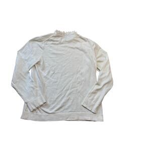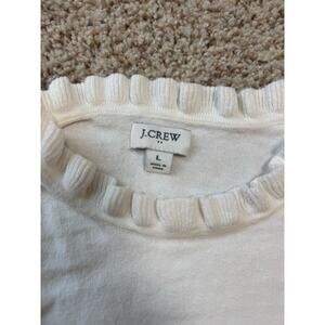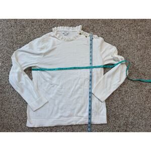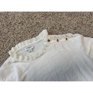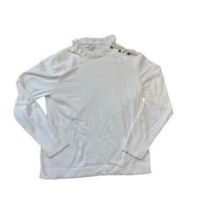 J. CREW Ruffle collar Sweater, women's large, 100% Cotton, White, Gold buttons
