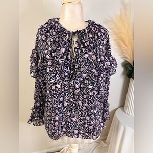 ! J. CREW Ruffle crinkle chiffon top in floral flourish Size S NWOT (A0275)
