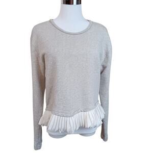 J. CREW Ruffled Sweatshirt M Gray Cream Girly Preppy School Casual Boho Pleats
