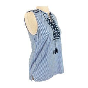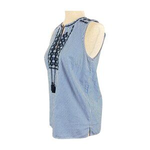 J. Crew Sleeveless Blue And White Striped, Embroidered Top, Size 0