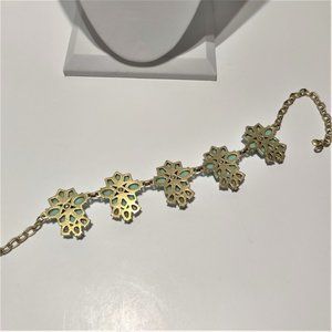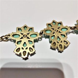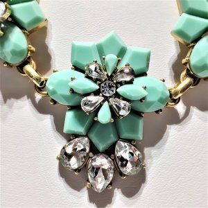 This lovely statement necklace from J. Crew is the perfect addition to any jewelry collection! This necklace comes with beautiful icy green color stones that are multifaceted to pick up the light. It comes in the shape of a flower with small rhinestones making up the inner flower and large ones dropping off the flower. It comes with a chunky chain and J. Crew written on the drop! It Sparkles in the light!! NO stones are missing - all accounted for. This necklace is in Excellent condition!