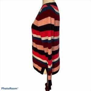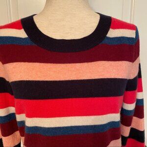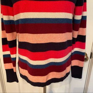 J. CREW SWEATER CREWNECK BLUE RED PINK CASHMERE STRIPED SIZE M