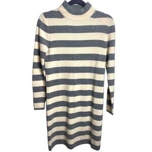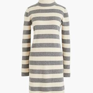 J. CREW SWEATER DRESS S WOOL BLEND STRIPED IVORY GRAY RIBBED MOCK TURTLENECK