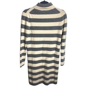 J. Crew Wool Blend Ivory White Gray Striped Turtleneck Cozy Short Sweater Dress Sz S