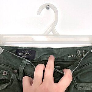 J. CREW Sateen Toothpick Pant Olive ish Green Super Skinny Cropped Crop Ankle 27