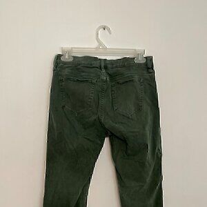 - solid olive ish green super skinny pants pant / jeans jean (softer, none traditional denim material - brand calls it "sateen")