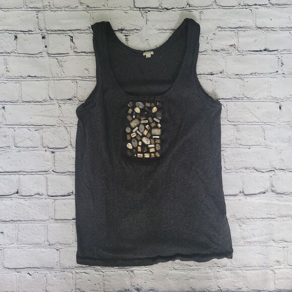 J. CREW Scoop Neck Gray Tank Top With Rhinestone Detail Womens Size XS
