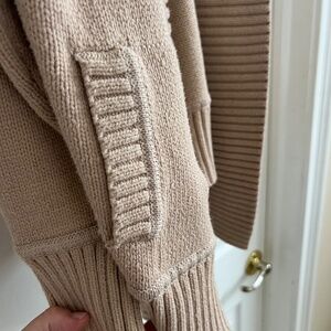 J CREW Shawl-Collar Open-Front Cotton Blend Long Cardigan M/L Khaki