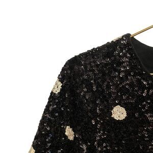 J CREW Short Sleeve Sequin Embellished Top T-Shirt Polka Dot Tee Black Small