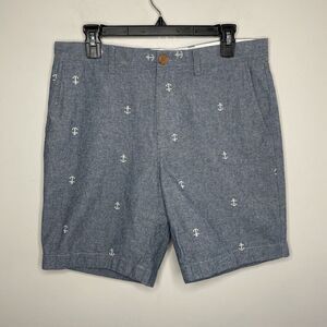 J CREW Shorts Mens 32 x 9 Blue Chambray Gramercy Chino Nautical Print Cotton