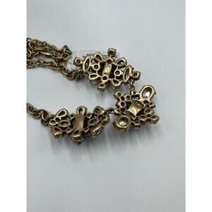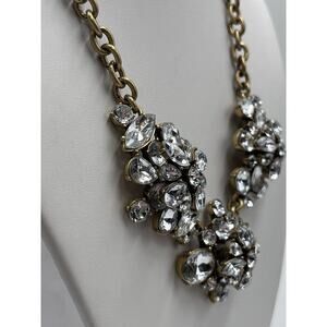 J. CREW Signed Crystal Rhinestone Gold Brass Tone Cluster Statement Necklace New